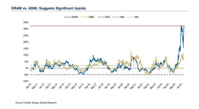 内存方面,DRAM价格有望突破历史高点,而“价格创新高”往往对应“股价创新高”,且这次还有更扎实的盈利支撑。它也提示一个不寻常现象:合约价与现货价出现明显错配,反映供需张力不一般。